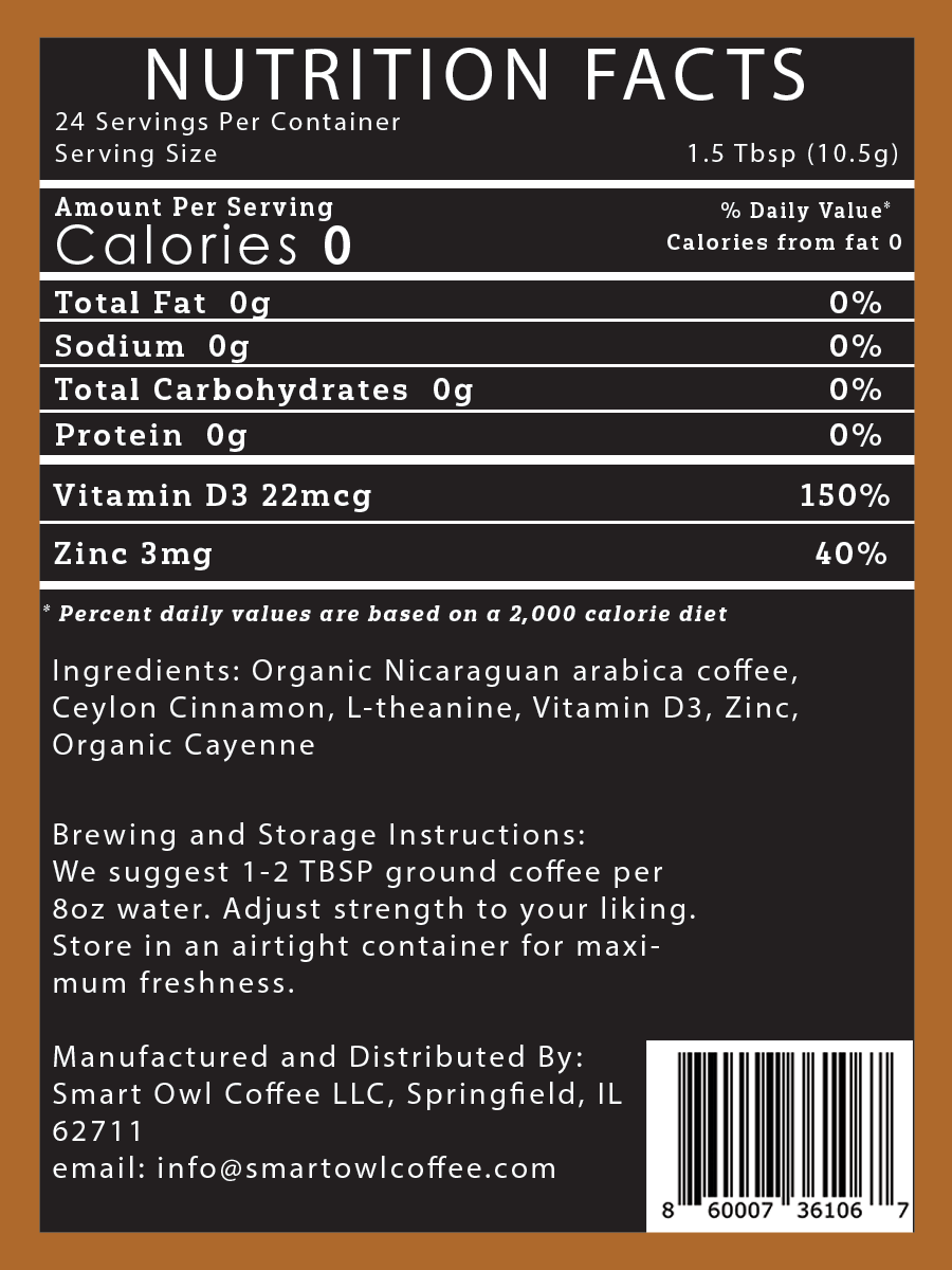Organic Italian Roast Caramel Mocha Coffee With L-Theanine, Vitamin D3, Zinc, Cinnamon & Cayenne